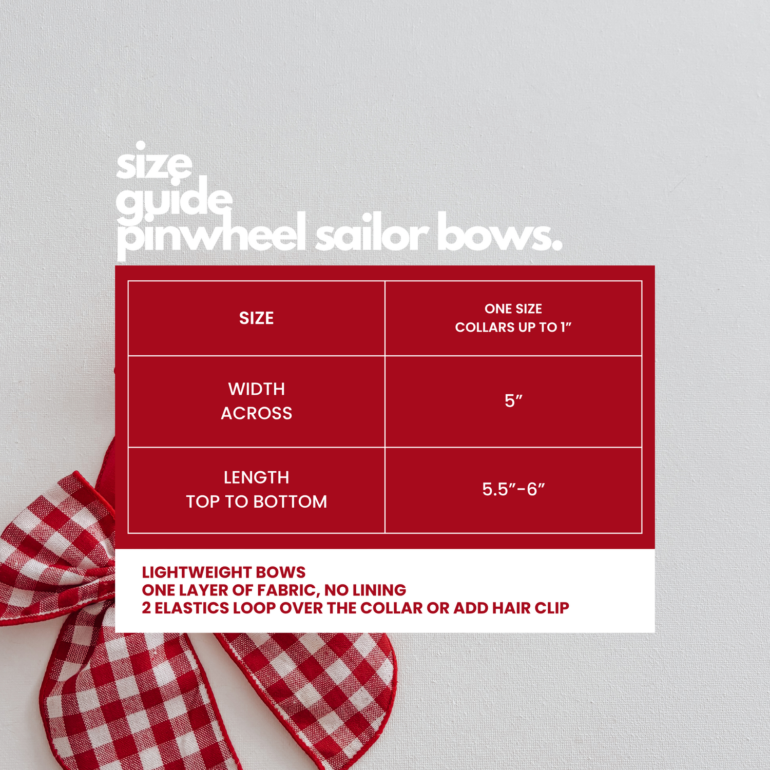 PINWHEEL SAILOR BOW ONE SIZE. Slip over the collar up to 1” (depending on thickness). Made with 2 built in elastics for extra stability. Lightweight pinwheel sailor bows, one size fits all
