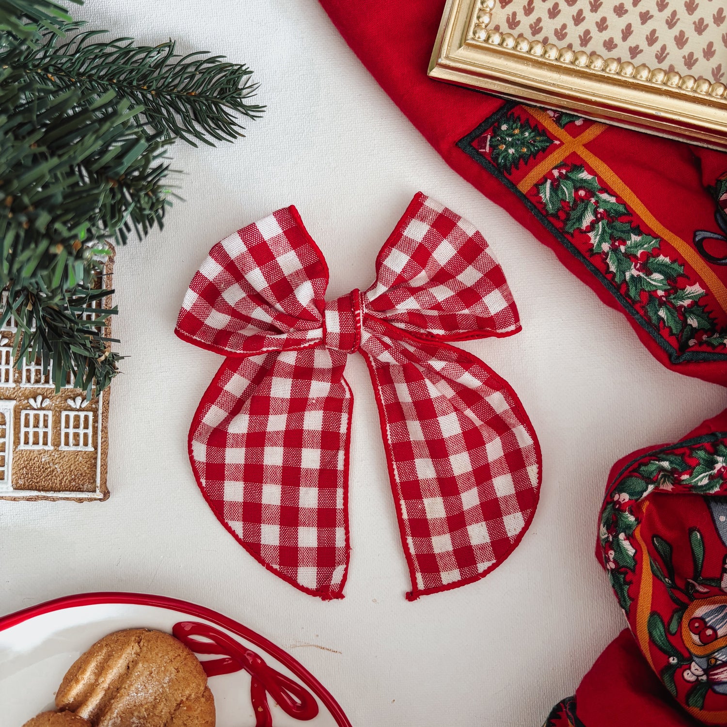Red Gingham Dog Bow